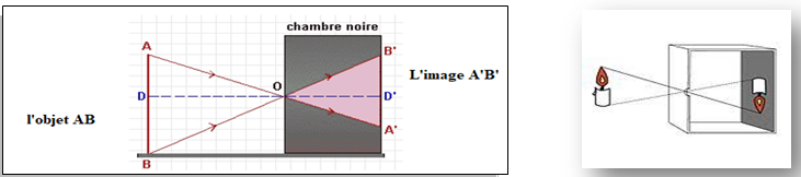 · on obtient sur l’écran de chambre noire une image A’B’ renversée par rapport à l’objet AB