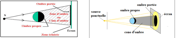 · La zone sombre du corps opaque est appelée l’ombre propre.