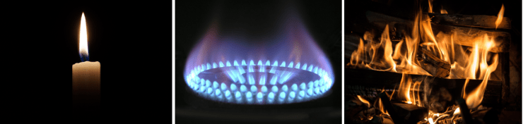 La chaleur produite au niveau de la braise fait cuire les éléments qui composent le combustible. La chaleur va détruire le combustible en le transformant en gaz : c’est le phénomène de pyrolyse, qui permet de nettoyer certains fours modernes. Ces gaz, au contact de la braise, vont s’enflammer : c’est-à-dire que les gaz vont eux aussi réagir avec l’oxygène de l’air. Cette réaction est également très rapide, et produit assez de chaleur pour faire briller le gaz : c’est la flamme. Là encore, c’est un phénomène d’incandescence : plus la flamme sera chaude, plus elle sera claire.